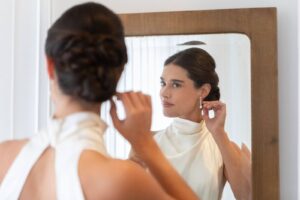 Los preparativos de Clara estuvieron llenos de momentos delicados y muy personales. Mientras se maquillaba y se colocaba el vestido, compartía risas y miradas cómplices con las personas más importantes para ella.